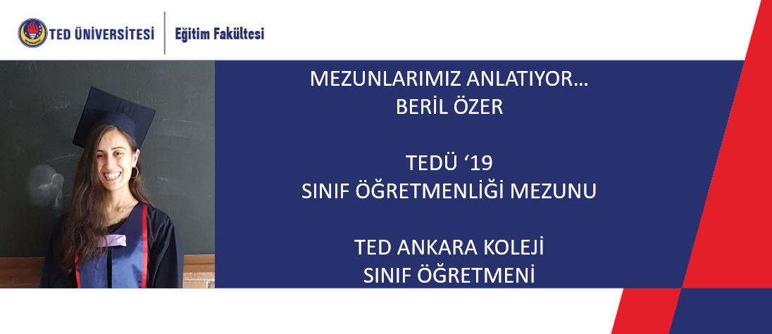 Türk Eğitim Derneğinin eğitime verdiği önem ve eğitim alanında öncü oluşu TED Üniversitesini seçmemdeki en önemli nedendir. TED Üniversitesinin öğrenci odaklı eğitimi, eğitim dilinin İngilizce olması ve tabii ki yenilikçi ve liberal eğitim anlayışı TED Üniversitesi’ni seçmemde önemli faktörler olmuştur. Hazırlık sınıfından dördüncü sınıfa kadar hem akademik hem sosyal olarak keyifli bir eğitim hayatım oldu. Yeni mezun bir sınıf öğretmeni olarak TED Ankara Koleji'nde çalışacak olmanın mutluluğunu ve heyecanını yaşıyorum. Her şey için teşekkürler!