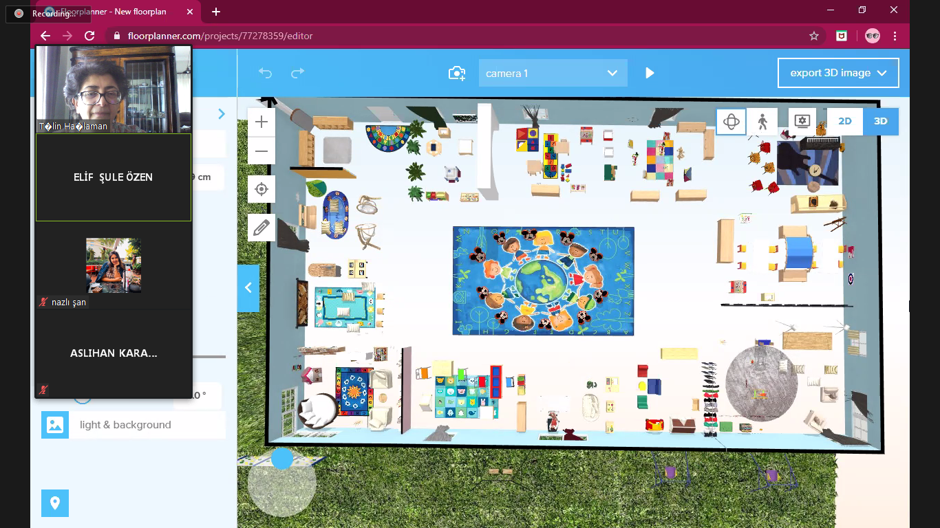 In the ECE 302 Learning Environments course which is conducted by the faculty member of Primary Education Program at the Department of Elementary Education, Assoc. Prof. Dr. Tülin Haşlaman, teacher candidates of early childhood and primary education programs made 3D and 2D designs of their own classes. Moving from a theoretical point of view, they designed learning centers (dramatic play area, music corner, reading corner, math corner, etc.).
