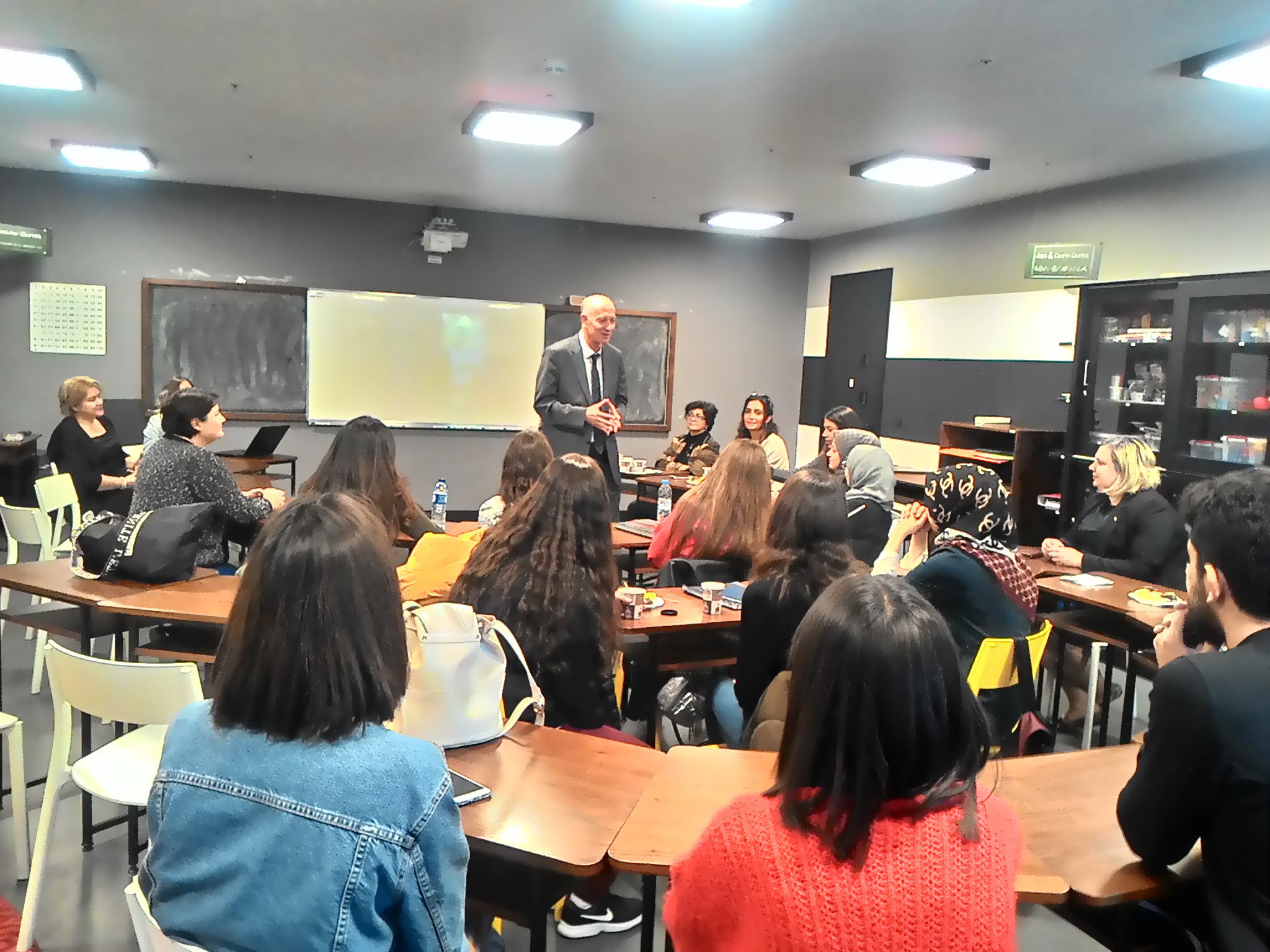 On November 5, first-year students in TEDU Primary Education and Early Childhood Education Program met with the faculty of Elementary Education Department. Dean of the Faculty of Education Prof. Dr. Yüksel Kavak informed the teacher candidates about the advisory process. Subsequently, the Department of Elementary Education introduced lecturers and research assistants to the teacher candidates briefly. Teacher candidates were posed questions 'Why Teaching?' and 'Why TEDU?' through “MENTI” application and discussed the answers after presenting their ideas on the whiteboard. The meeting ended with an understanding of the teacher candidate’s expectations and the questions they wondered about their programs.